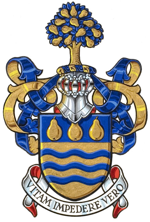 Daniel Bellemare's personal coat of arms. The motto reads, in Latin: "To devote one's life to the truth". Source: The Public Register of Arms, Flags, and Badges of Canada. Click to enlarge.