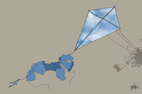 I think that this might be the most creative illustration about the Arab/Middle East Spring. Iran is in Light blue which means it is one of the countries that have not yet experienced the Spring effect. I understand why Israel is a different colour but I have had a tough time explaining to myself why the UAE is the same colour as Israel and why Lebanon is not even recognized on the map. I assume that the artist is saying that Lebanon is a part of Syria.