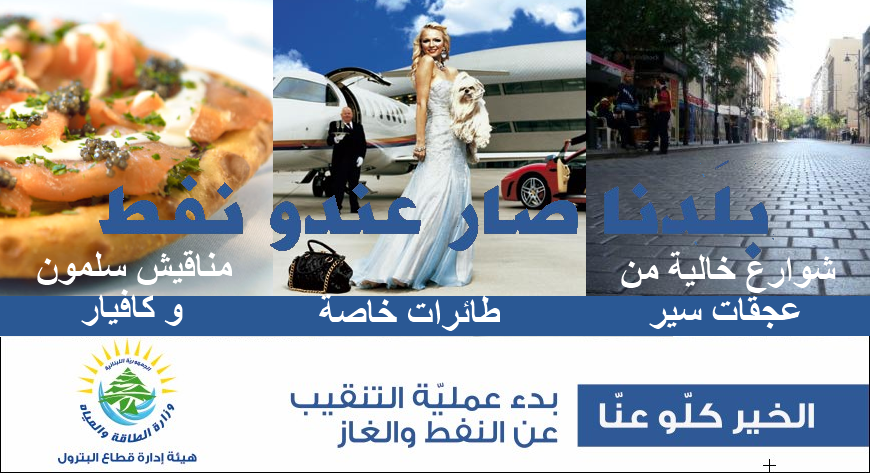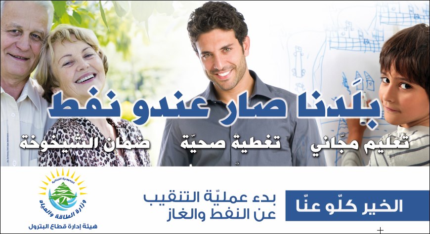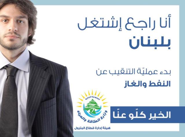 Lebanon’s Ministry of Energy and Water has launched a new campaign promoting the benefits of off-shore oil exploration for the average citizen. The ads contain shots of smiling people aside captions like: “My children and I are staying in Lebanon“… or “My future is in Lebanon“… or… “I’m going back to work in Lebanon!”