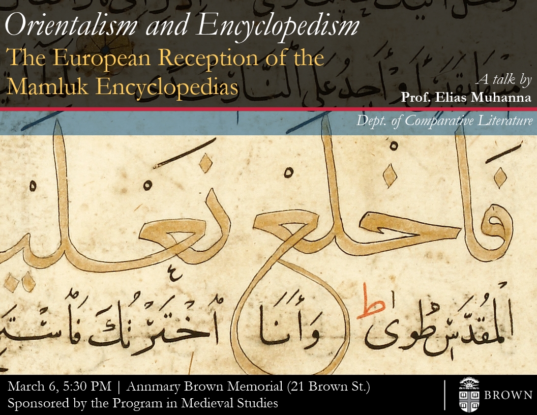 Just a note about a talk I’m giving tomorrow evening at Brown, in the Medieval Studies lecture series. It’s at 5:30pm in Providence, in case any Boston-area medievalists are interested. And here’s an essay on a related topic (“Why was the 14th century a century of Arabic encyclopedism?”) that just came out a few months ago in a edited volume from Cambridge Univ. Press.